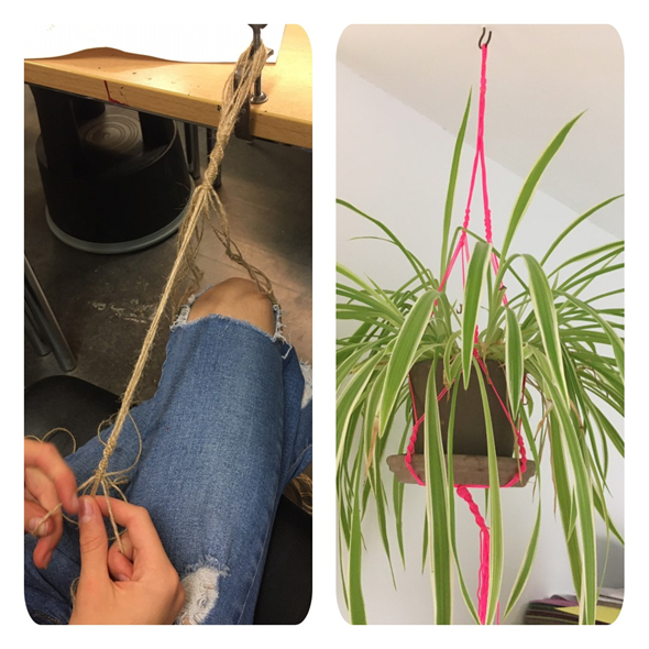 Nu vi knyttede og flettede i stor stil, var der også mulighed for at lave plantehængere.
